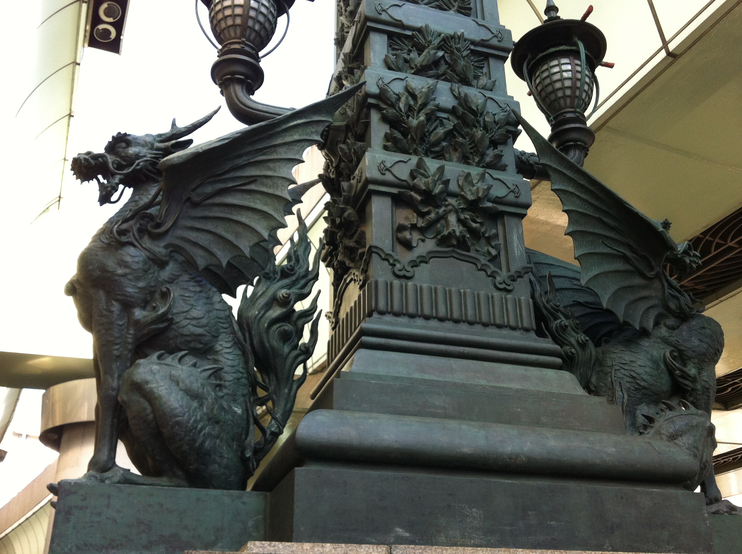 日本橋の真ん中にはドラゴンが鎮座しています。両端には狛犬もいます。