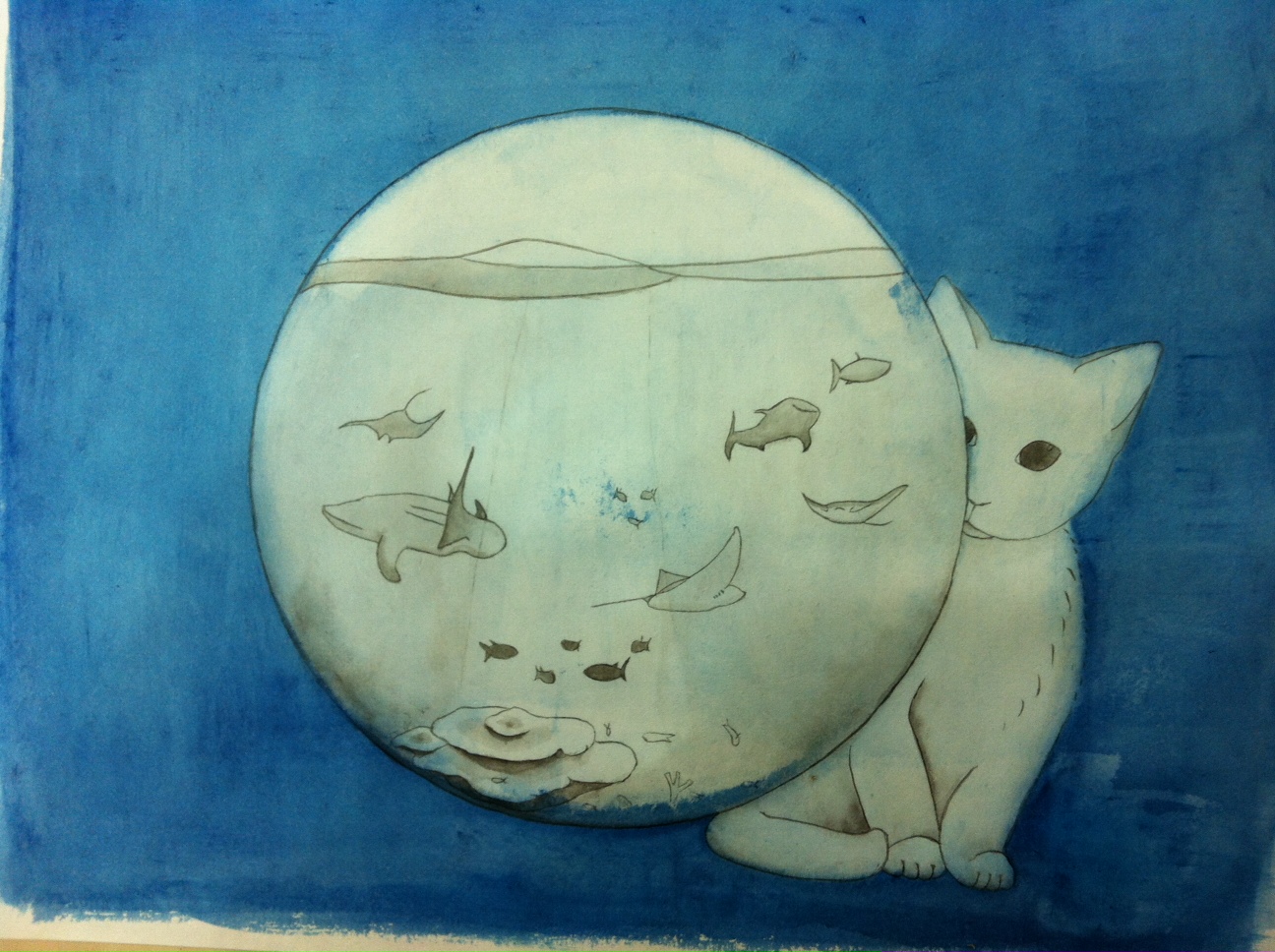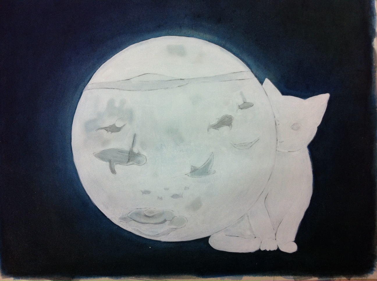 藍群青をベースに濃緑と藤色と墨をグラデーションさせながら塗っては乾かし、塗っては乾かしを何度も繰り返してましてね、やっとここまで深い色を出したのに、写真で見たらただの藍色だったという…… orz