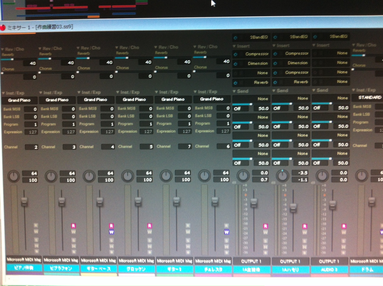 ピアノロールである程度曲ができてボカロの音もいれたらミキサーで音を色々いじります。