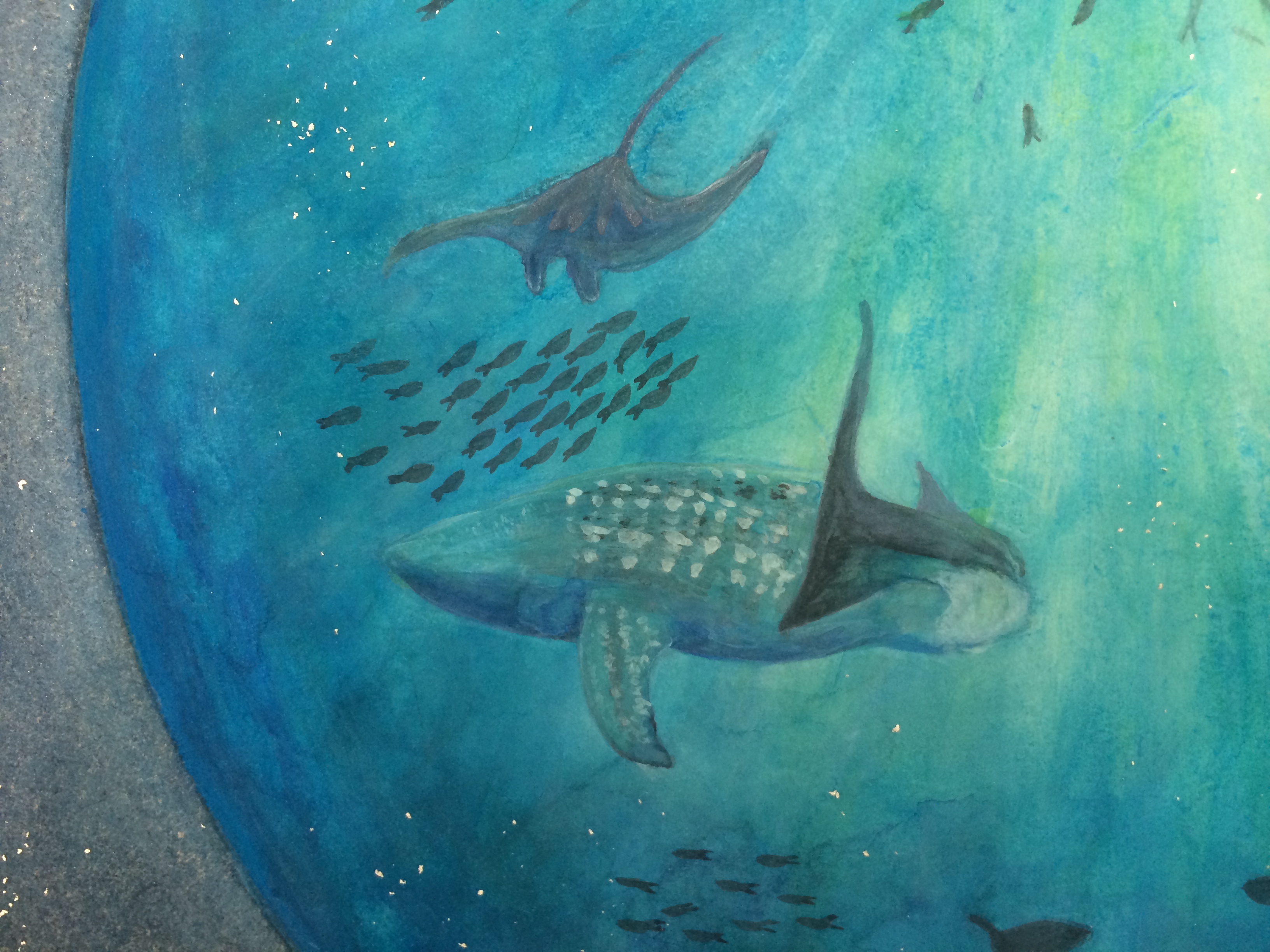 海の中を筆跡を残さないように何重にも色を重ねていきます。