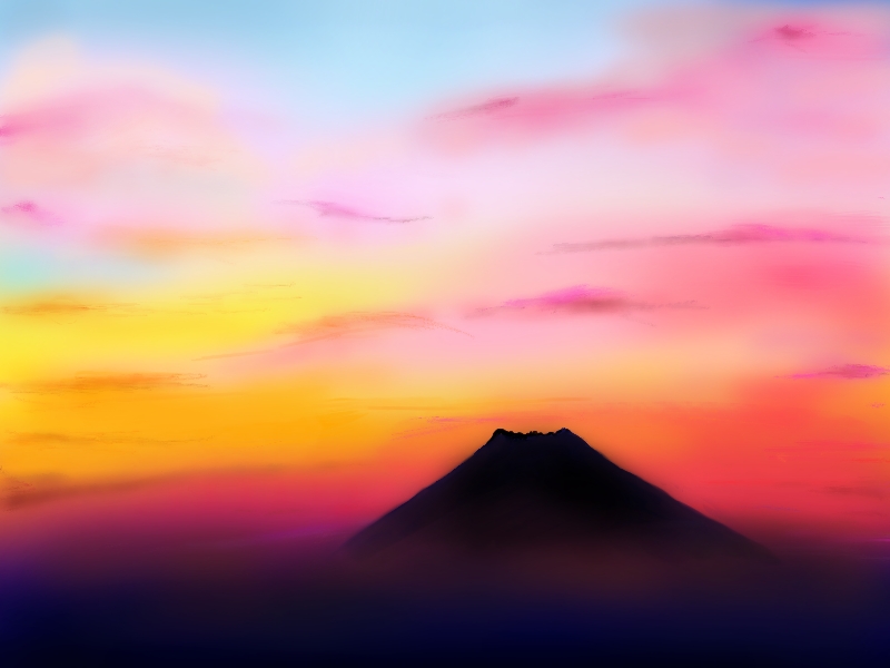 大観のような富士と春草のような空気を目指したけどやっぱりそう上手くはいかないものです。